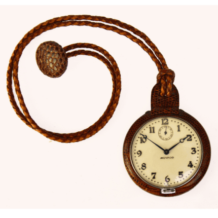 Movado Art Deco Pocket Watch, Sterling Silver with Snakeskin, Swiss 1920