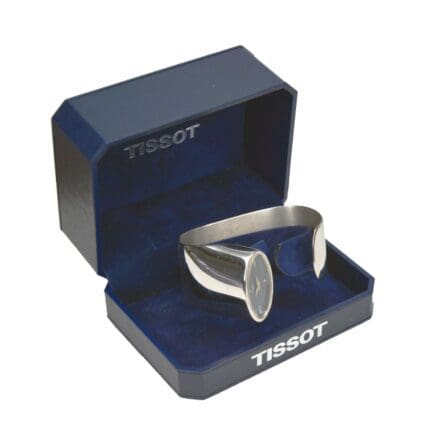 Omega-Tissot Sterling Silver Mid-Century Modern “Sculpture-to-Wear” Lady’s Open Bangle Wristwatch, Switzerland 1960s