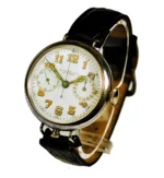 Exceedingly Rare and Exceptional, Museum Quality ** L.Leroy & Cie Sterling Silver “Monopoussoir” (single button) Chronograph Wristwatch, France 1915 **
