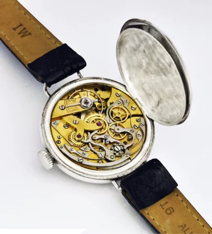SOLD – L. Leroy & Cie Sterling Silver “Monopoussoir” (single button) Chronograph Wristwatch, France 1915