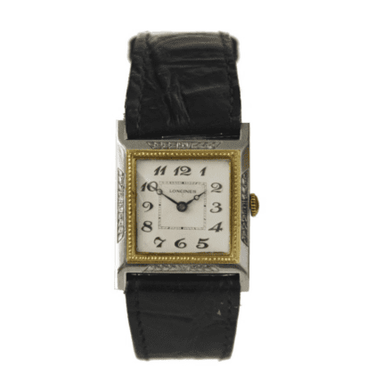 Longines 14K Two-Tone White and Yellow Gold Tank Wristwatch, Swiss 1923