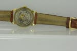 This impeccably kept watch with its entirely original dial, with applied gold Roman numeral and baton markers, features an extraordinary 18K gold case with beautifully sculpted fancy lugs. It is complemented by an exquisite hand-stitched watchband and represents elegance in its purest form.